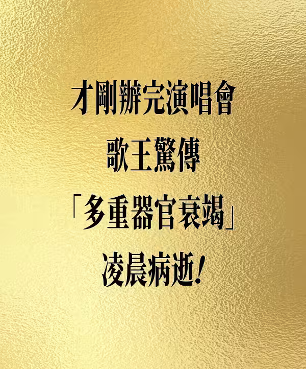 才剛辦完演唱會 歌王驚傳「多重器官衰竭」凌晨病逝