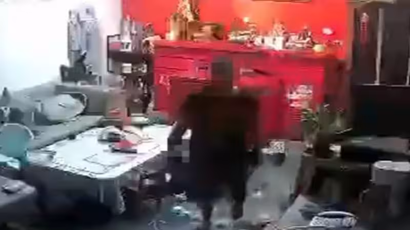 從監視器畫面可以看到,男子拿著刀子在家晃來晃去,隨手一揮把桌上東西全揮到地上,整個家被用的一團亂,越想火氣越大,只要看見眼前物品就用力摔,三個月前也曾在家中跟母親起爭執,兒子直接用全身力氣猛掐脖子,隨後傳來哀嚎聲。