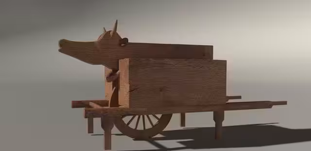 據說,諸葛亮在木牛流馬的頭部,安裝了機關,只要按一下,它們就會自動行走,非常智能。