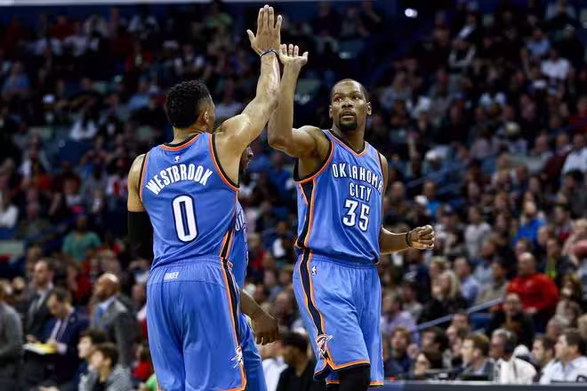 雷霆三劍客重聚!杜蘭特真兄弟!恭喜威少,你該有一個體面的退役