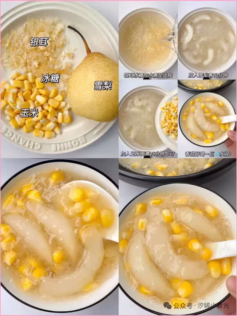食材:銀耳、冰糖、雪梨、玉米