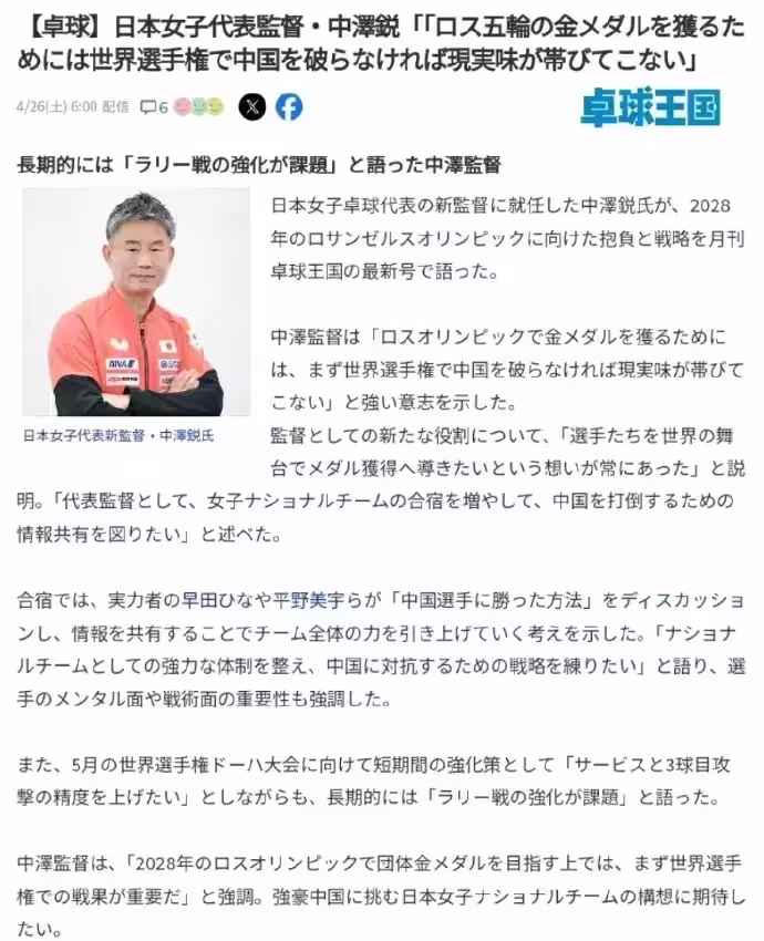 這些成績讓他於2025年1月正式執掌日本女乒帥印,日本乒協希望他能用「中國經驗」對抗國乒。然而,命運的轉折來得太快——上任不到一年,亞錦賽的慘敗和球隊的內耗便讓他陷入「里外不是人」的尷尬境地。