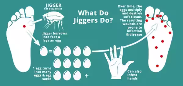 只要被它鑽進腳底板產下一個卵,兩周時間就可以繁殖成成百上千個卵,差不多就可以截肢了...