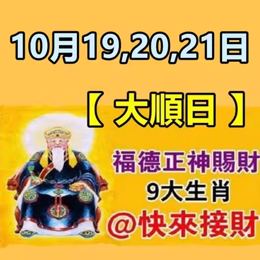 10月19.20,21大順日,福德正神賜財,9大生肖請接財