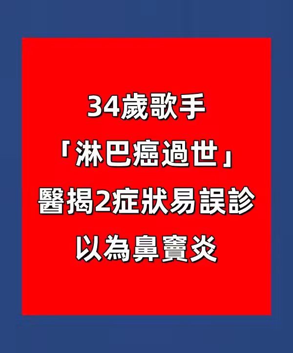 34歲歌手「淋巴癌過世」 醫揭2症狀易誤診:以為鼻竇炎