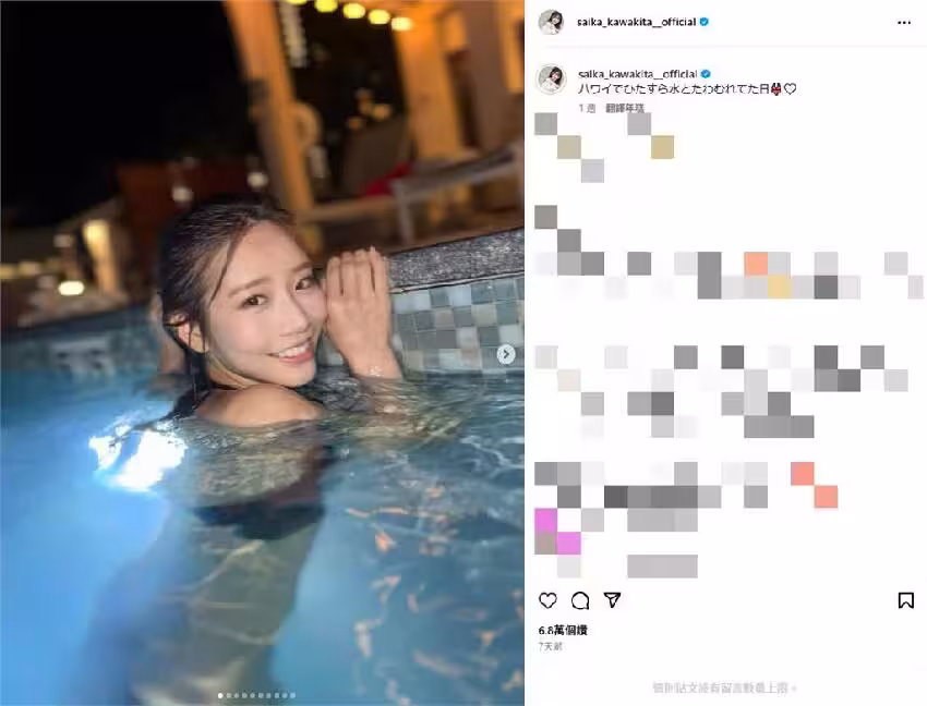 河北彩伽因被指為「小三」飽受撻伐,IG緊急關閉留言功能。(圖/翻攝自IG@saika_kawakita__official)
