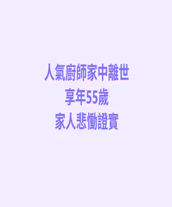 快訊/人氣廚師「家中離世」享年55歲!