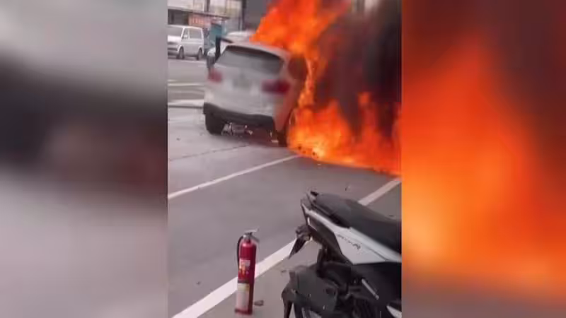「白色進口車行駛途中右前輪突冒火,車內三人緊急逃生!」雲林斗六市文化路20日下午驚傳火燒車意外,一輛載有駕駛、70多歲母親和看護的白色進口車行駛時,右前輪突然冒出白煙並陷入火海,所幸三人及時逃離,未造成人員傷亡。熱心店家與民眾立即拿滅火器支援,消防隊員4分鐘內撲滅火勢。