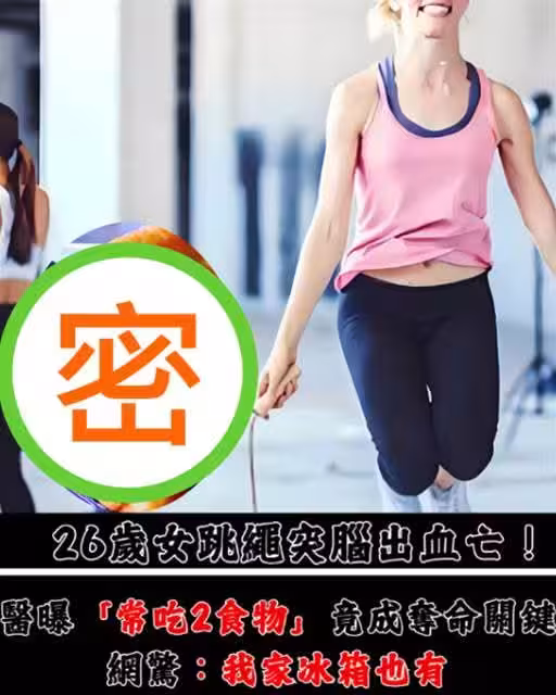 腦出血|26歲女跳繩突腦出血身亡 醫生揭致命原因:常吃2種食物出事