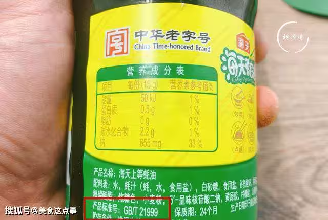 第二點:買蚝油注意產品標準號不管是什麼調料,都會有國家的標準生產號,比如蚝油的標準號是GB/T21999,GB是國標的意思,而T是推薦的意思,所以國家推薦大家購買標準號是21999的蚝油,如果沒有這5個數字,就建議大家不要買了,不然是浪費錢。