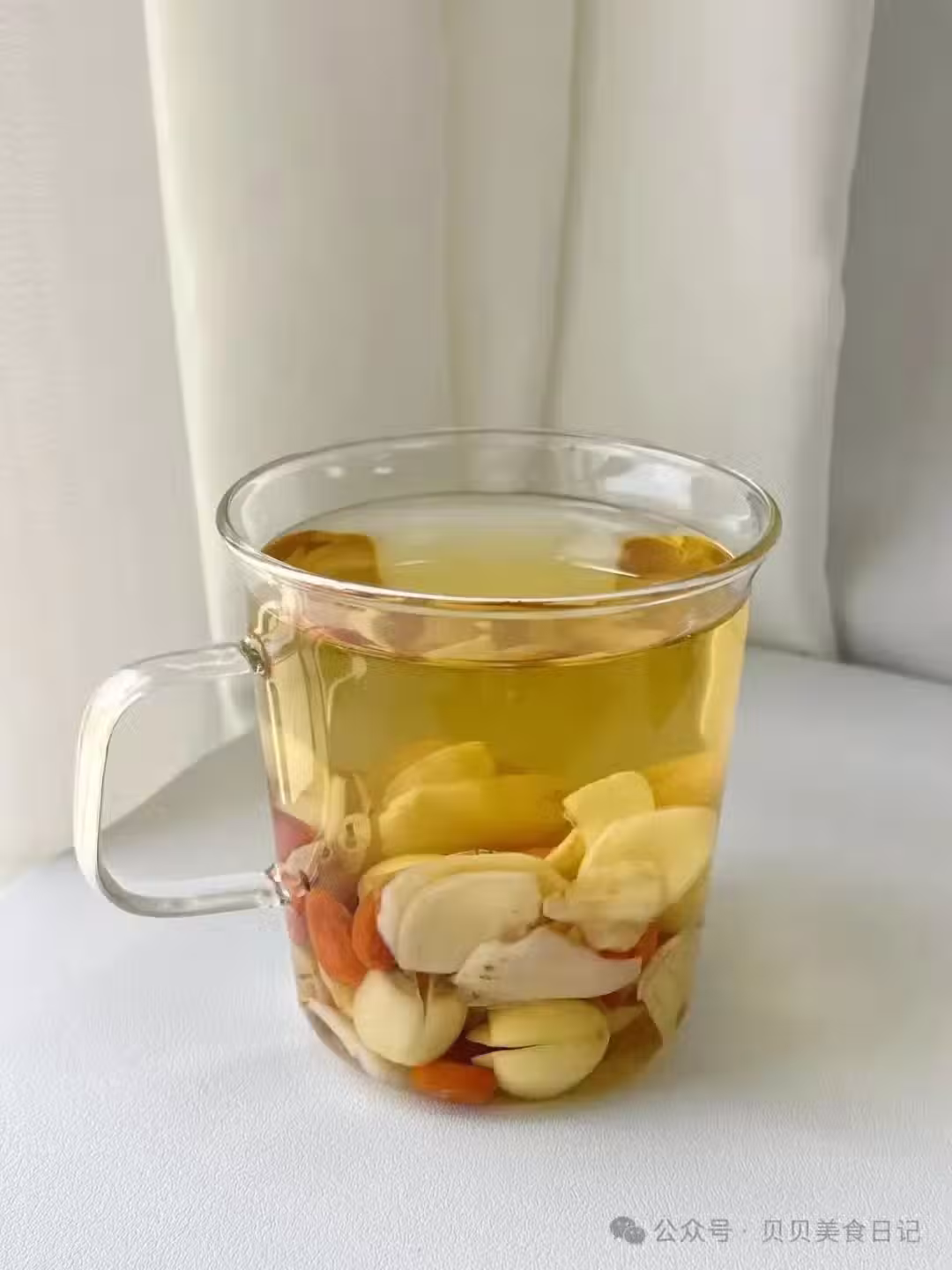 做法:將所有材料洗凈,放入杯中,倒入開水沖泡,蓋上杯蓋悶15分鐘即可飲用。