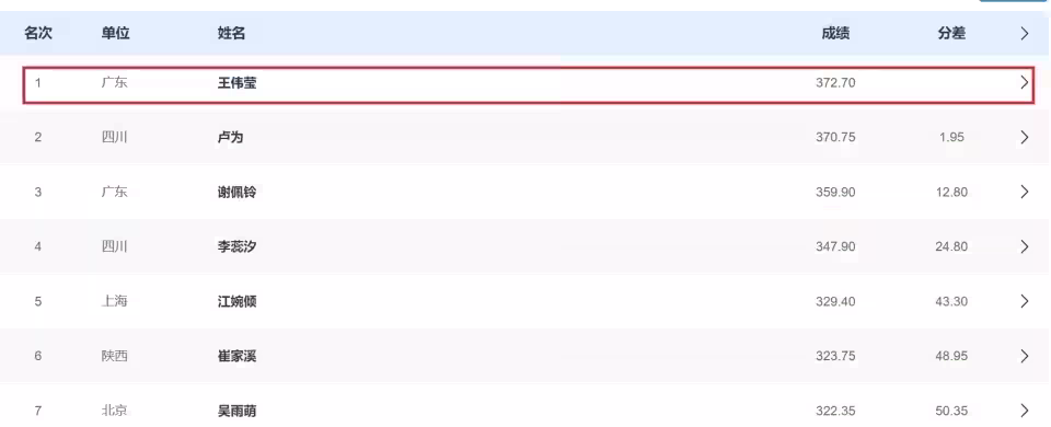 恭喜!全紅嬋新搭檔王偉瑩372.70分奪第一:可愛比心,嬋寶恩師鼓掌喝彩