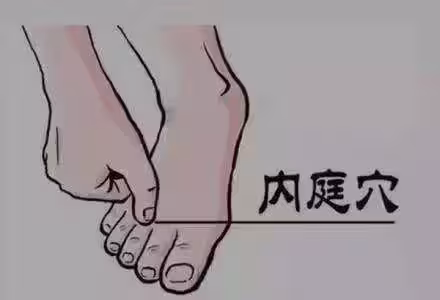 凡是胃火引起的牙痛、咽喉痛、鼻出血、口臭、胃酸、便秘都可以按摩內庭穴。