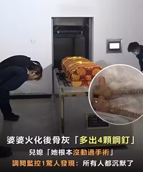 婆婆火化後骨灰「多出四顆鋼釘」 兒媳「她根本沒動過手術」...調閱監控一驚人發現:所有人都沉默了!