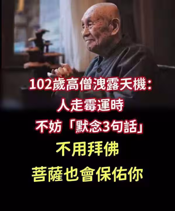 102歲高僧泄露天機:人走霉運時不妨「默念3句話」 不用拜佛 「菩薩也會保佑你!」