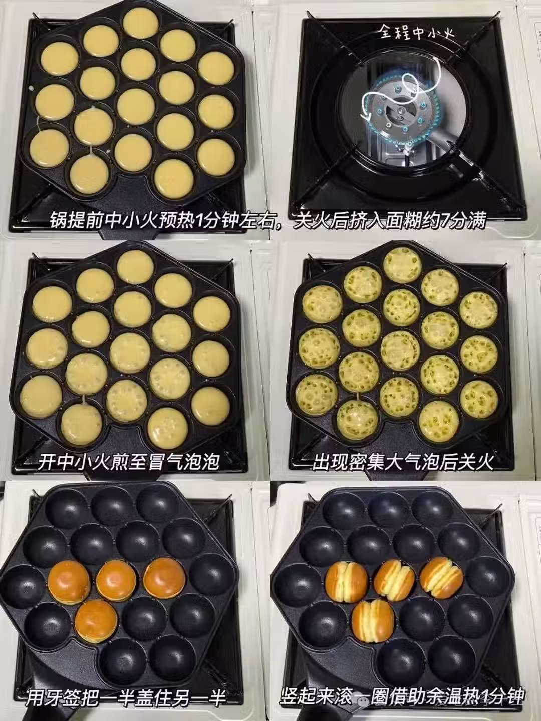 3. 鍋一定要提前預熱一會再擠麵糊,這樣煎出來的雞蛋仔吃起來口感才會外酥里軟~