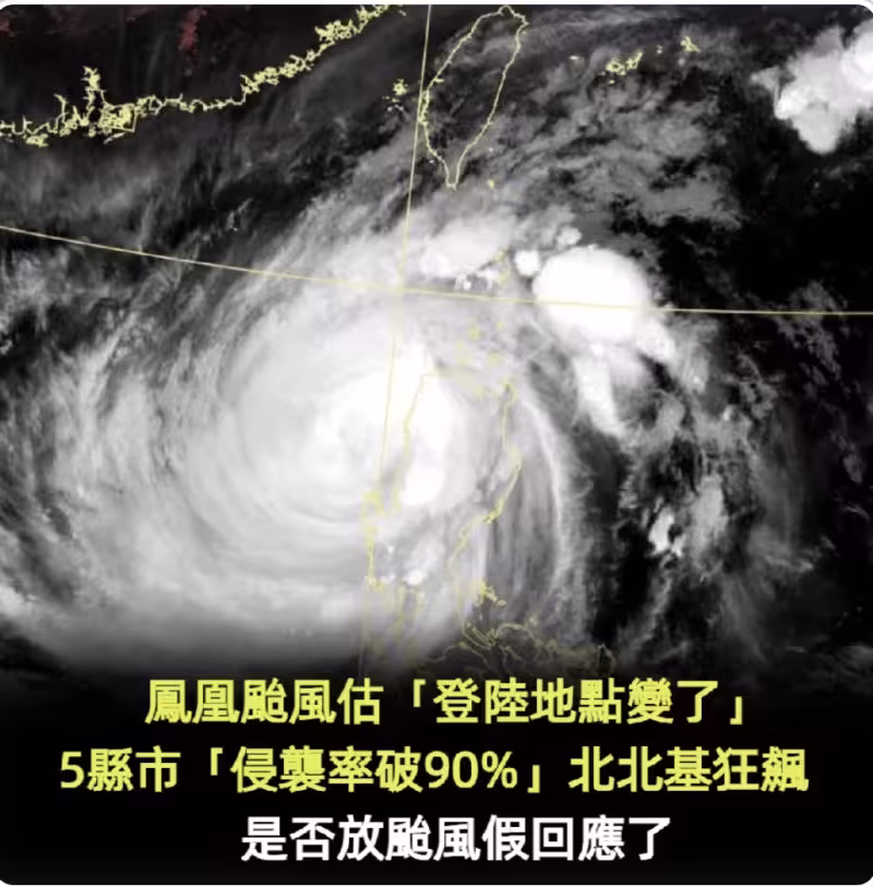 鳳凰颱風估「登陸地點變了」!5縣市侵襲率破95%「北北基狂飆」是否放颱風假回應了