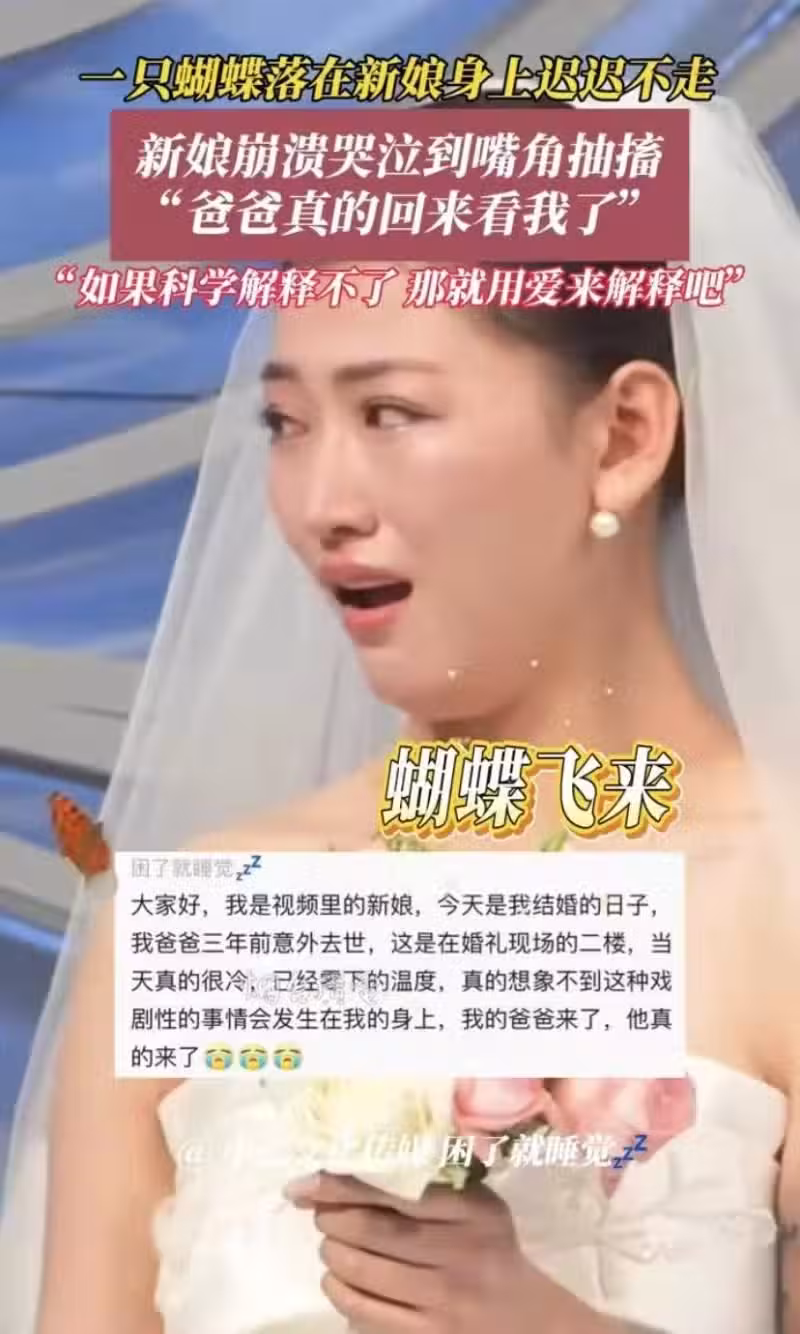 婚禮上,「一隻胡蝶死守新娘」 遲遲不走「新娘愣3秒」當場淚崩顫喊:今天他的真來了