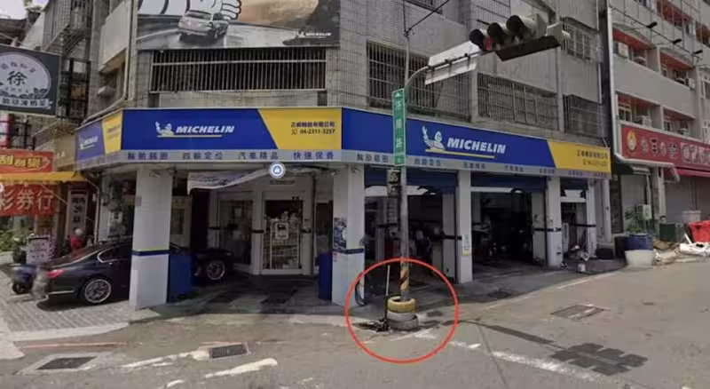 台中「紅綠燈套3輪胎」怎麼放進去?網友笑稱大仙施法 老闆解答了 30年已救2命