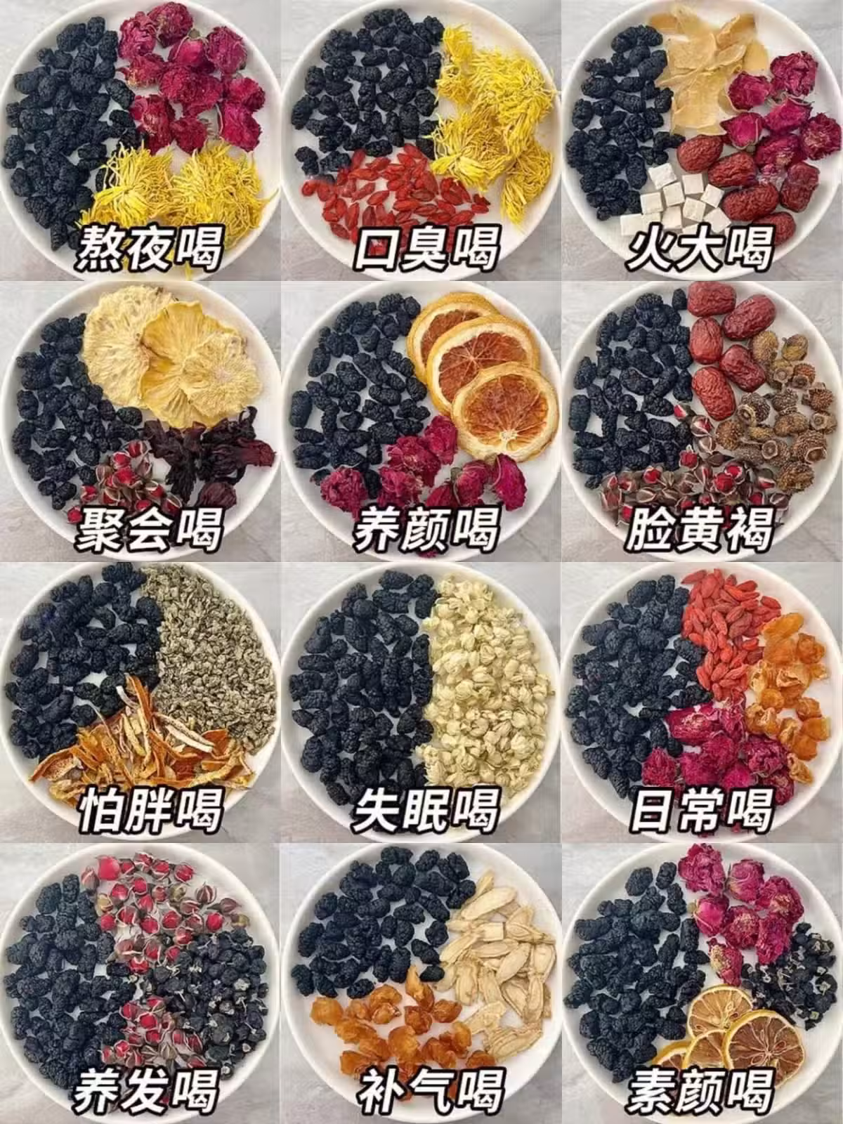 ✅熬夜喝:桑葚干+玫瑰花+菊花