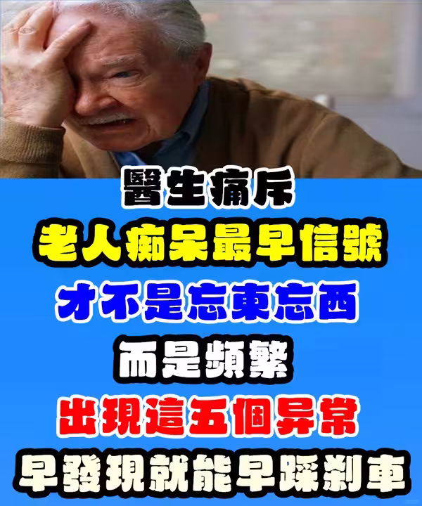 醫生痛斥:老人痴呆最早信號「不是忘東忘西」!!而是頻繁「出現五異常」:早發現就能早踩剎車