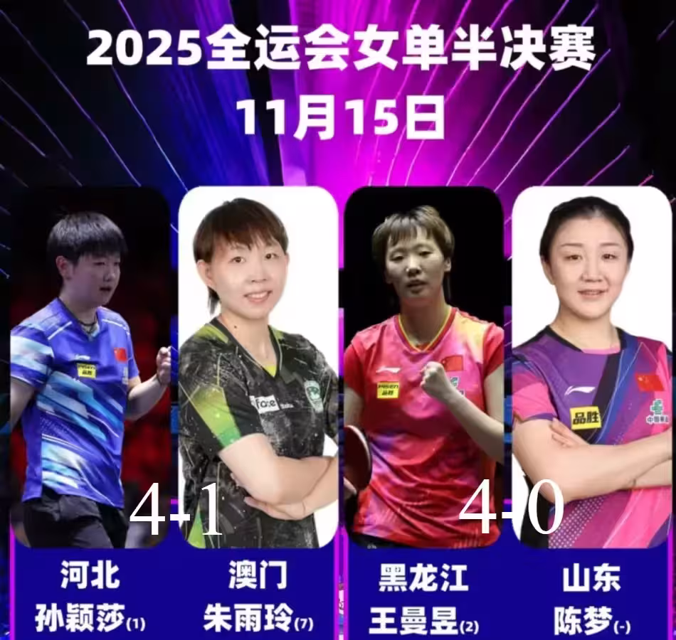 全運會男團4強出爐:世界冠軍2:3出局,樊振東苦戰,王楚欽剃光頭....