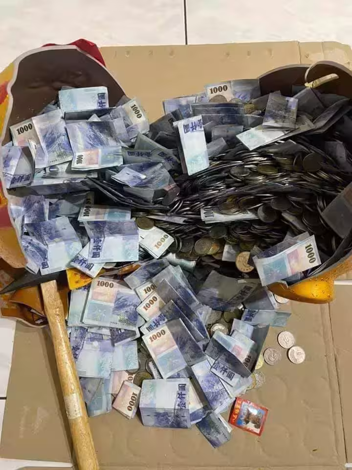 存了一整年!他年末打破豬公看到「一片藍藍紙鈔海」~算出總額後嚇爛:太扯了吧!