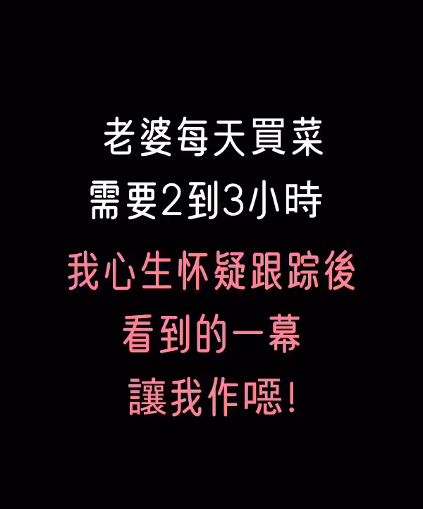 老婆每天買菜需要2到3小時...我心生懷疑跟蹤後,看到的一幕讓我作噁
