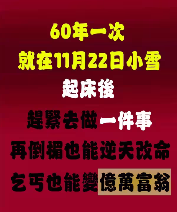 60年一次,就在11月22日「小雪」 起床後趕緊去做一件事,再倒楣也能逆天改命!乞丐也能變億萬富翁