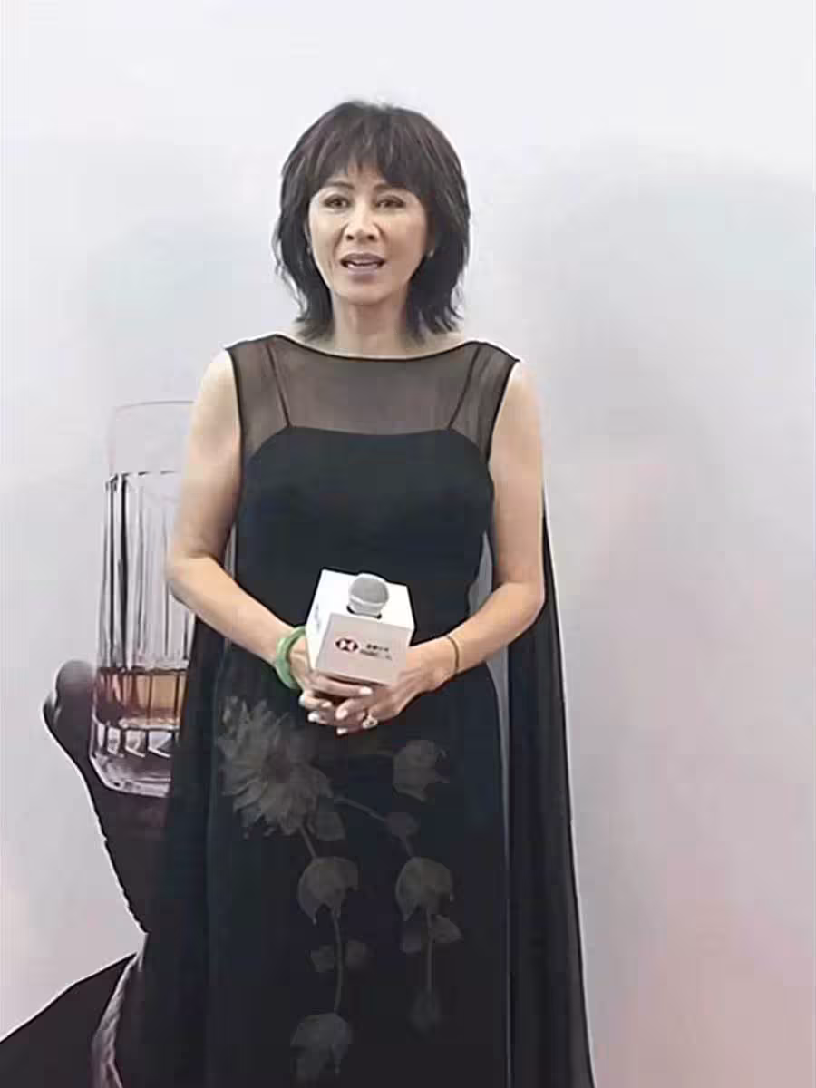 在活動中,劉嘉玲身穿一件黑色刺繡薄紗弔帶連衣裙,整體造型相當典雅。裙子的設計頗具心思,刺繡部分集中在裙子的下半身,而上半身則以弔帶設計為主,雖然保持了一定的性感元素,但相比以往,她的穿衣風格顯然保守了不少。年近六旬的她,顯然不再以性感為主打,即便選擇了弔帶裝,也沒有採用過於大膽的低V設計。