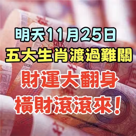 明天11月25日,五大生肖渡過難關,財運大翻身,橫財滾滾來!