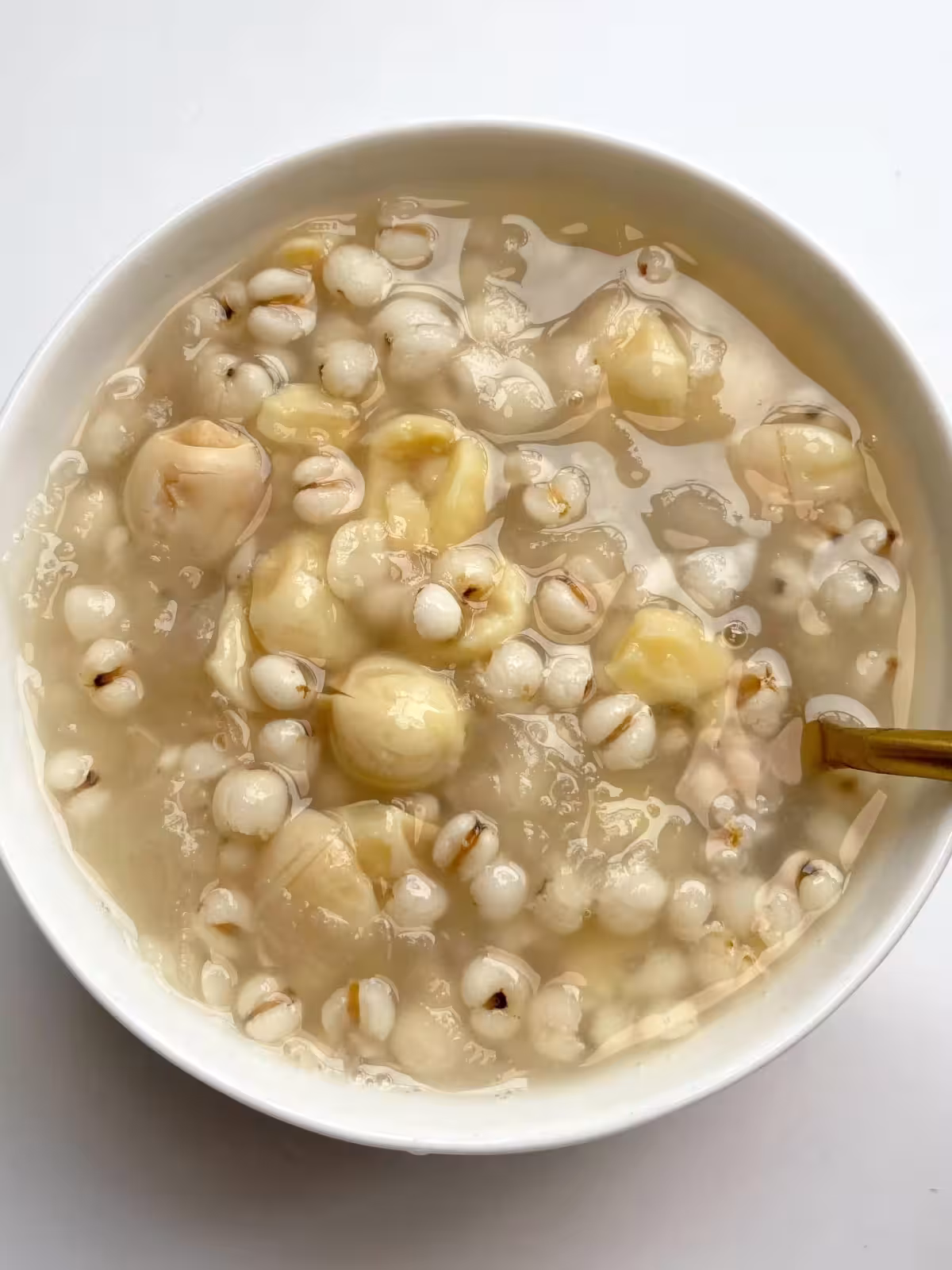 廣東這濕熱的天氣真的讓人抓狂😫姑姑煮了一鍋蓮子薏米甜湯,說雨季💦潮濕天氣最適合喝的!口感香甜軟糯,全家老小都很愛喝喲!