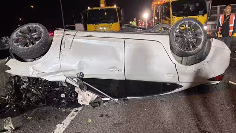 2025年11月25日苗栗縣/苗栗縣銅鑼交流道南下出口今天晚間7時34分發生自小客車翻覆事故,46歲陳姓男子受困車內約1小時,經消防人員搶救送醫仍宣告不治。
