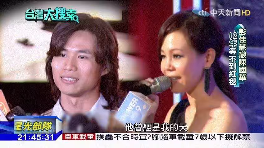 她曾與知名音樂人陳國華有過一段轟轟烈烈的情感,兩人相戀12年最後卻選擇分手,陳國華曾為彭佳慧寫過許多情歌,如《相見恨晚》、《心酸的情歌》等,彼此分手後彭佳慧曾抗過婚姻,問是不是跟陳國華有人問,她坦言 我假設回答沒有太情緒了,影響很大。