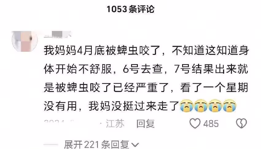 每年的夏天不僅有蚊子,還有一種比蚊子更毒的蟲子,也就是蜱蟲,它的個頭可能跟蚊子差不多,但是它的殺傷力可是要比蚊蟲更厲害,只要叮在人的身體裡面,那就是像一棵樹一樣,種在人的肉裡面,而且它渾身上下都帶著很多的病毒,每年都有人因為被蜱蟲咬了之後去世。