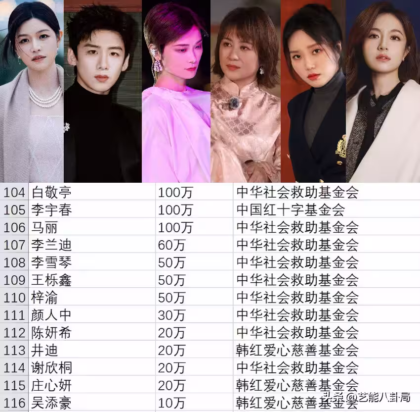 同樣沒有官宣的,還有捐出60萬的李蘭迪,捐50萬的李雪琴、王櫟鑫,捐20萬的陳妍希等。