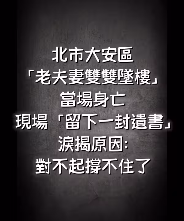 快訊/北市大安區「老夫妻雙雙墜樓」當場身亡, 現場「留下一封遺書...」 淚揭原因:對不起撐不住了