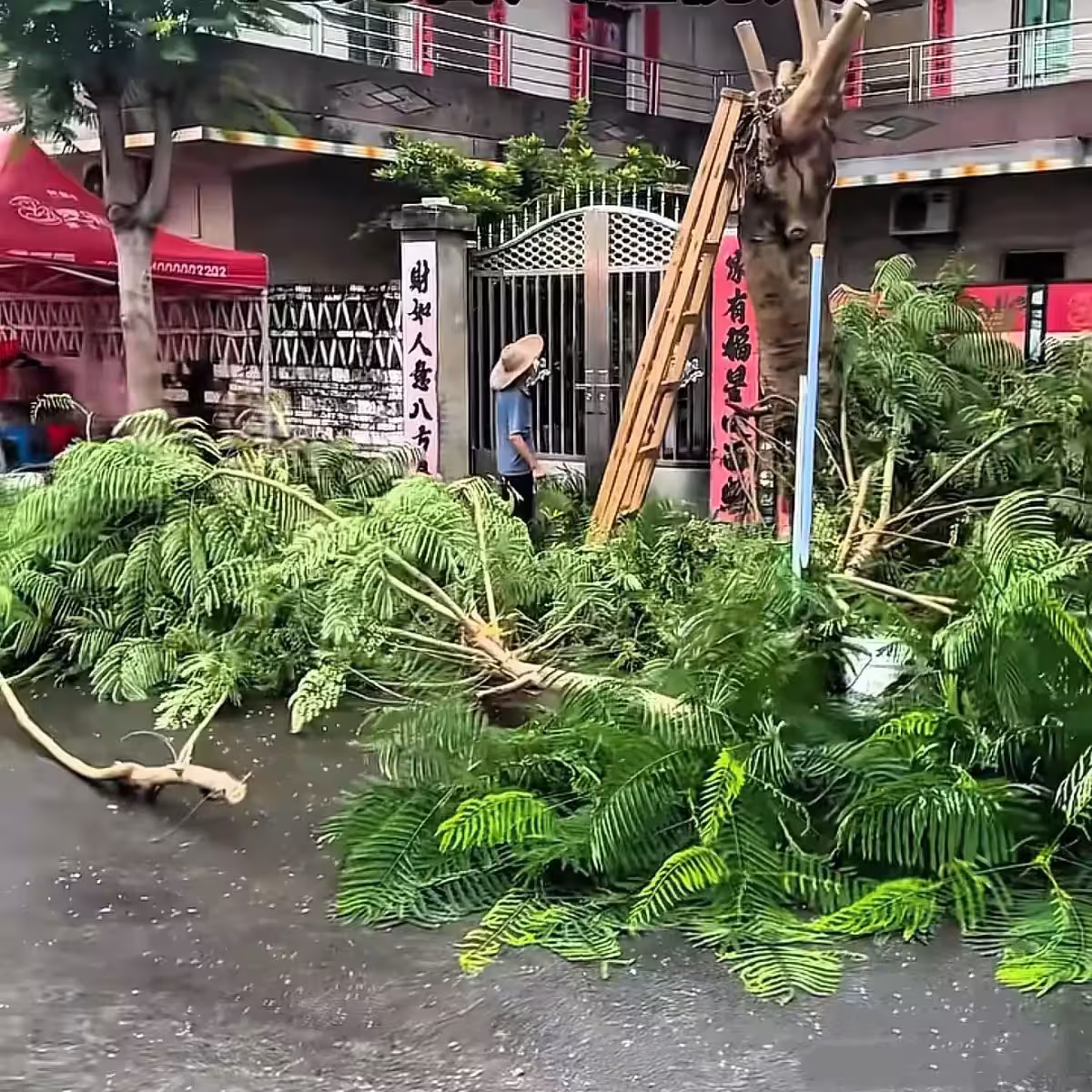 全紅嬋爸爸下血本了!買「環抱」鳳凰樹用吊車栽商店門口,真氣派