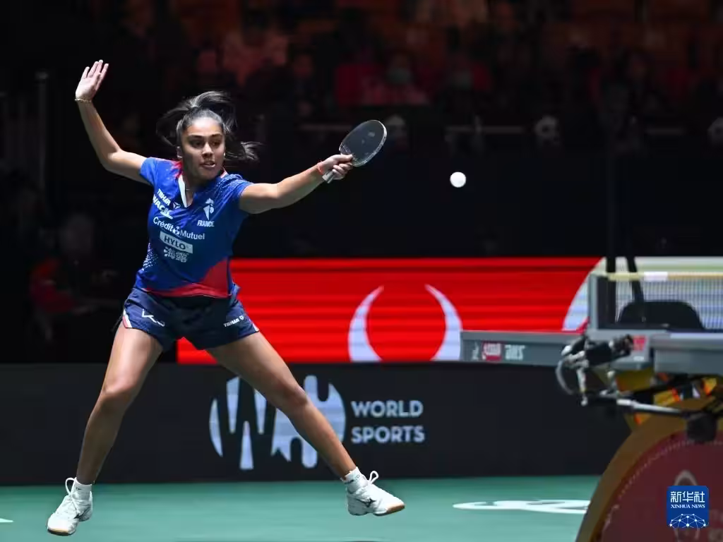 12月4日,法國隊選手普利蒂卡·帕瓦德在女單比賽中。她0比3不敵中國隊選手王曼昱。