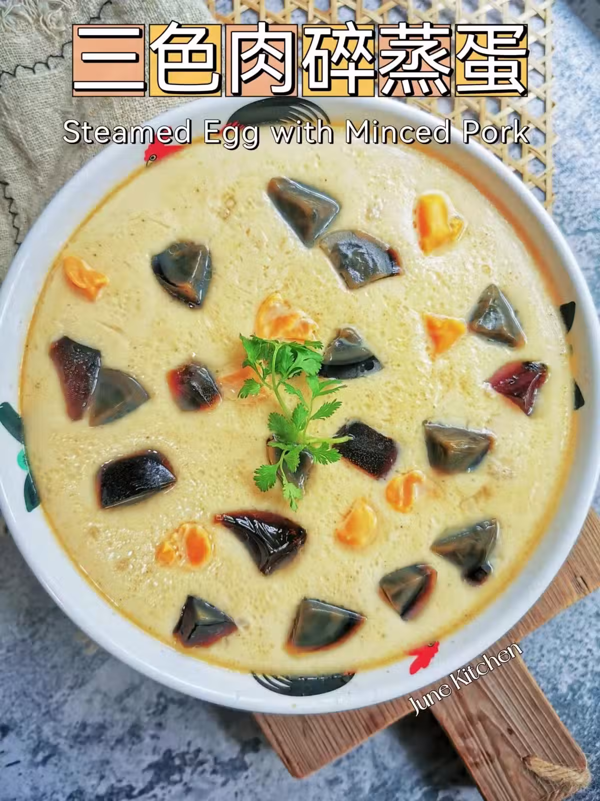 感謝大家的喜愛。三色肉碎蒸蛋。