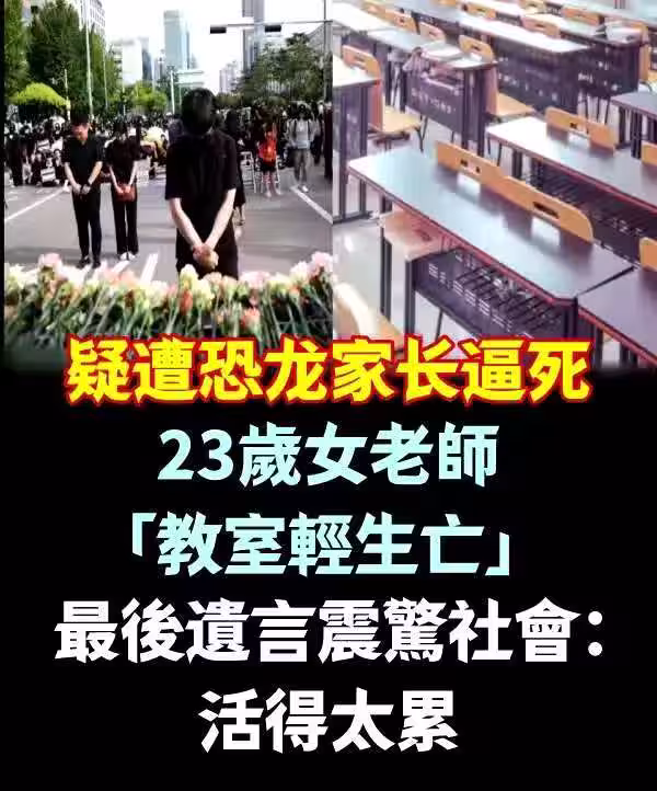 遭恐龍家長逼死,23歲女老師「教室輕生亡」 最後遺言震驚社會: 活得太累