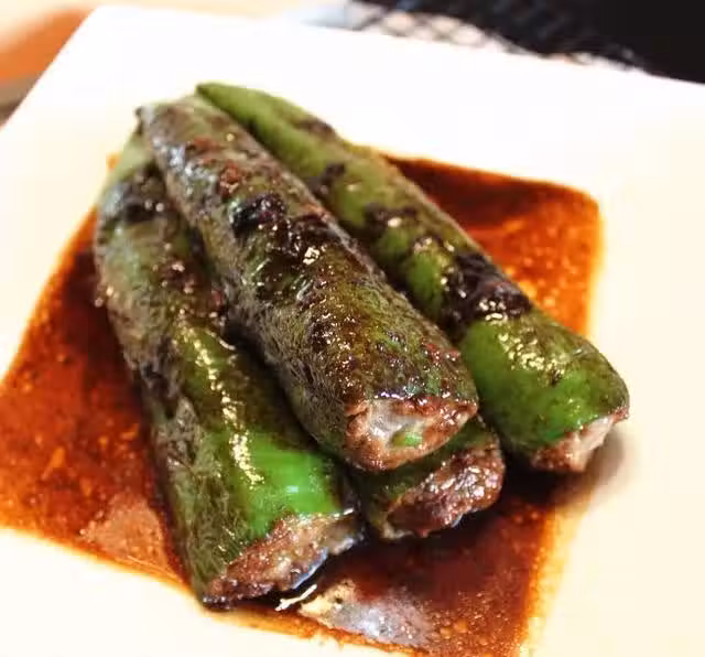 2.尖椒內塞肉的時候,離尖椒口稍微多空餘點,這樣做的時候,肉末不容易跑出來