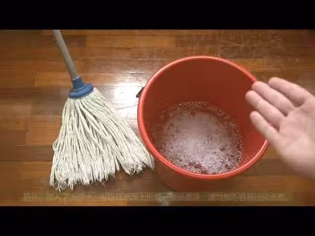 在拖地水裡加入了洗碗液和食鹽,洗碗液具有很強化解油污的功效,而食鹽可以消毒和殺菌,這樣做一下子就把地板上的油污拖乾淨。讓地板踩起來清潔乾淨,不油膩。
