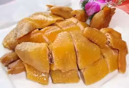 5. 燙好的雞,立刻浸在冰水中,讓其迅速冷卻,收緊雞皮;