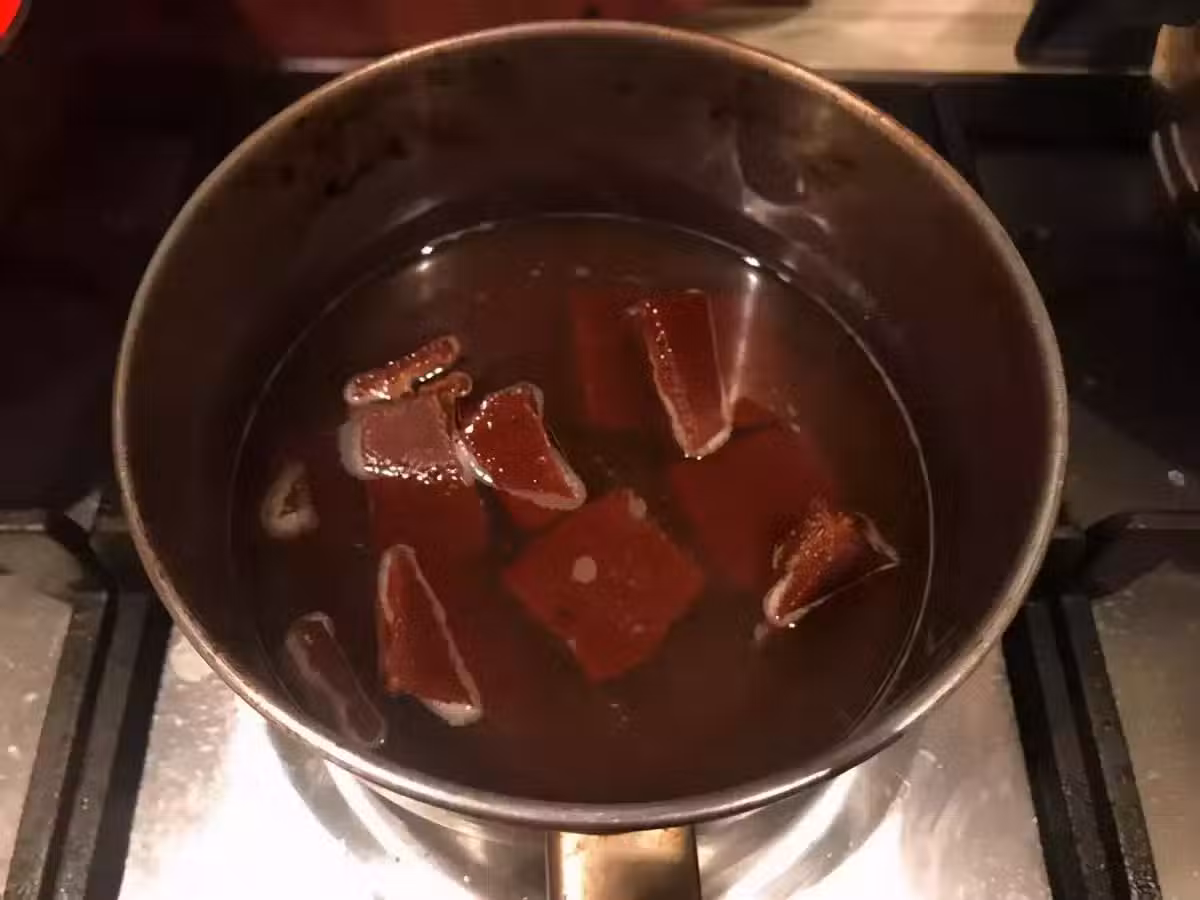 2.將煮好的紅糖水晾涼,過濾出多餘的紅糖碎渣備用,半斤紅糖大概能煮出半鍋的紅糖水。最好用細的過濾網,將碎渣過濾的盡可能地乾淨。