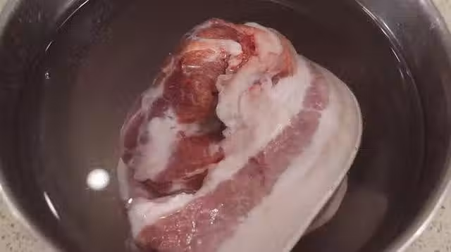 1:五花肉先用刀把肉皮刮一刮,沖洗乾淨後冷水下鍋,加薑片和料酒煮制豬肉,等鍋內燒開後先撇掉上面的浮沫,然後把豬肉煮上半小時;
