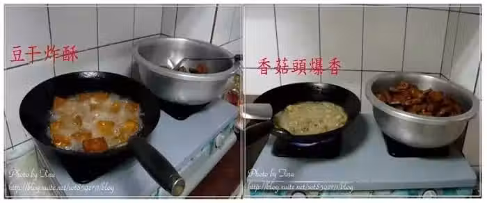 步驟:豆乾洗淨晾乾 ,豆乾、、香菇頭、先下油炸酥。