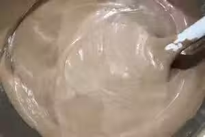將芝士糊倒入模具中,輕震下去除氣泡。