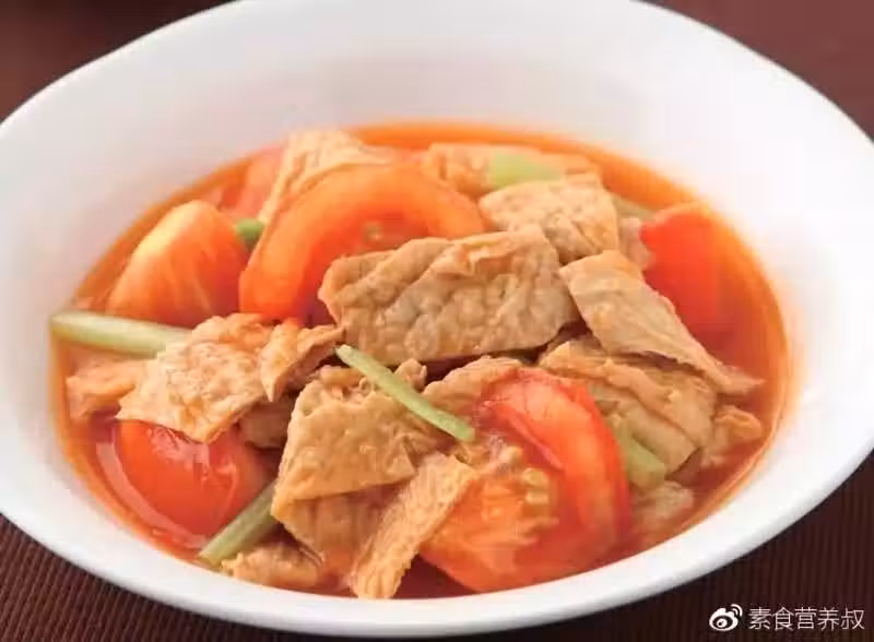 食材:豆皮50克,番茄250克,薑末5克,芹菜段15克,鹽1/4小匙,番茄醬1小匙,糖1/2大匙,醬油少許