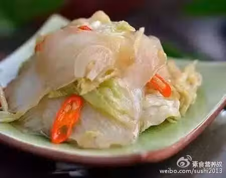 原料:白菜300g、油適量、鹽適量、生薑適量、紅尖椒適量